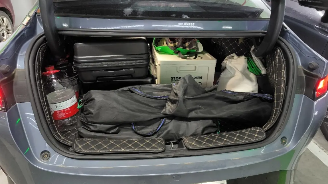 28寸行李箱、背包、换洗衣物、零食补给,甚至孩子的玩具,都能整整齐齐码在后备箱里。
