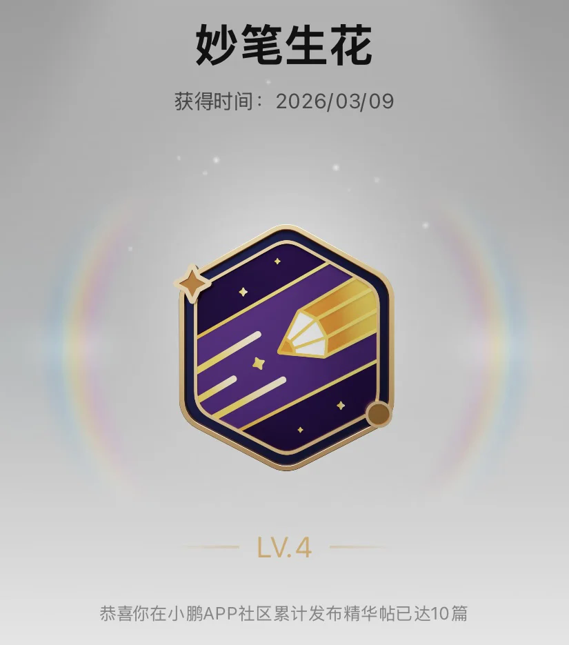 不知不觉攒下十几篇精华帖,每一篇都藏着真实的用车瞬间。这枚勋章,是对生活的热爱,也是对自己坚持的嘉奖。