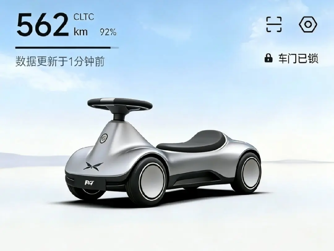 实在忍不住来提个小建议:希望官方能在小鹏APP里增加车辆造型自定义功能,让我们可以把主界面的爱车模型,一键切换成图里这种超萌的儿童扭扭车样式!如果官方能上线这个功能,不仅能让APP界面更有童趣、更有个性化,还能戳中很多鹏友的萌点,不管是给孩子看还是自己用都超合适。