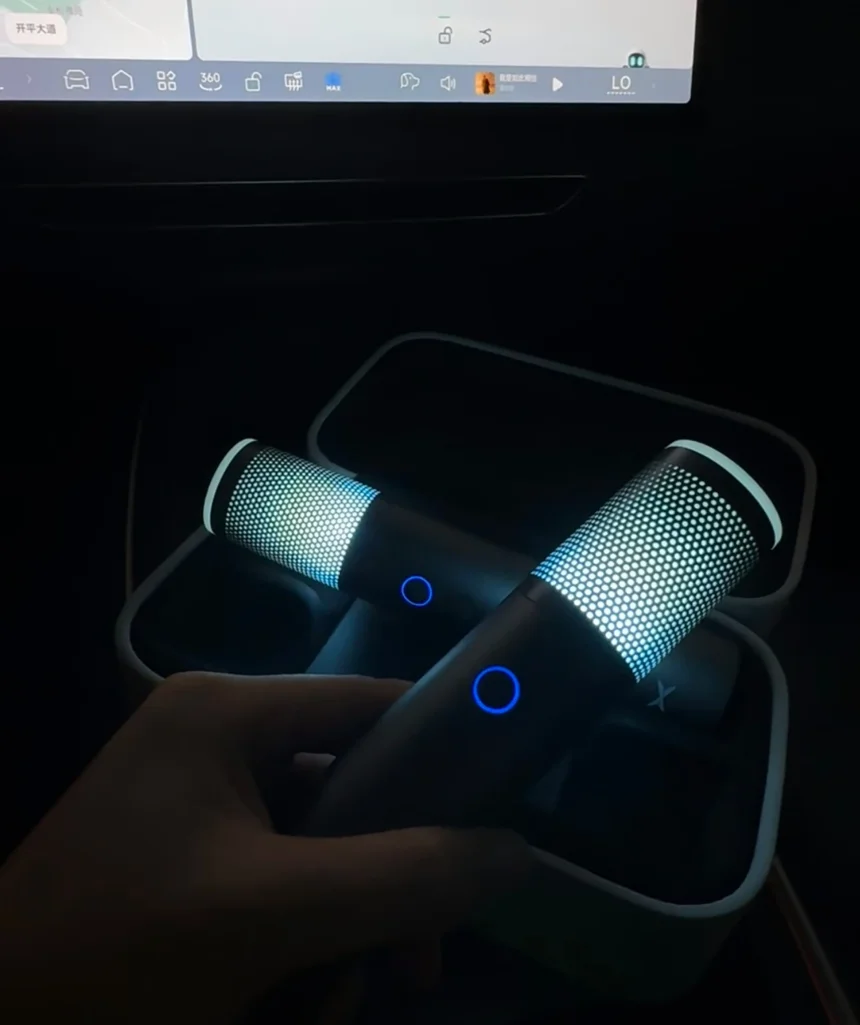 不必担心收音不清,车内的拾音系统灵敏又精准,哪怕轻声哼唱,声音也能清晰地通过音响传出。我把音效调成KTV模式,瞬间就有了包厢里的混响与环绕感。前奏响起,氛围灯立刻切换成动感的律动模式,色彩随着节奏快慢交替闪烁,车门、中控台、头顶的光影交织在一起,整个车厢变成了我的专属舞台。