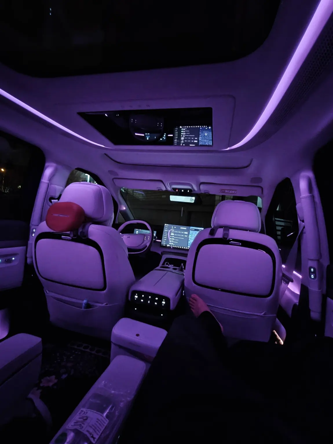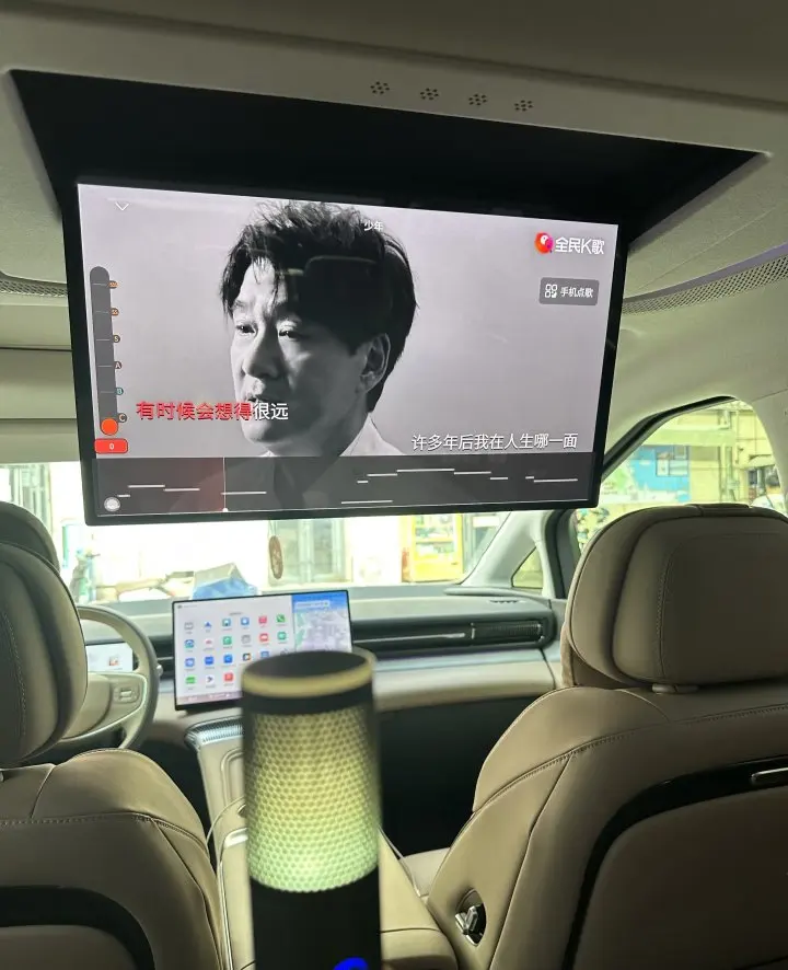 偶尔晚上接娃放学,还会开着KTV模式,全家一起飙歌,7.1.4杜比全景声的环绕感,直接把车内变成了小型KTV,娃们唱得开心,我也能彻底放松。