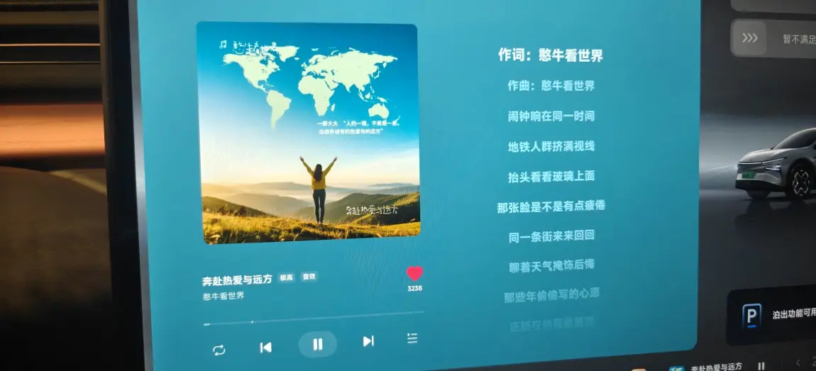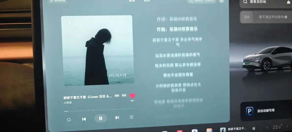 偶尔想家的时候,《辞家千里又千里》的旋律一响起,“他乡的风雨,那么多年都没停,我也不会困在雨里”的歌词直戳心底。我把氛围灯调成沉静的海蓝色,音响里的人声温柔又有力量,在小鹏的座舱里,哪怕孤身一人在异乡,也能被这份旋律治愈,找到继续前行的勇气。