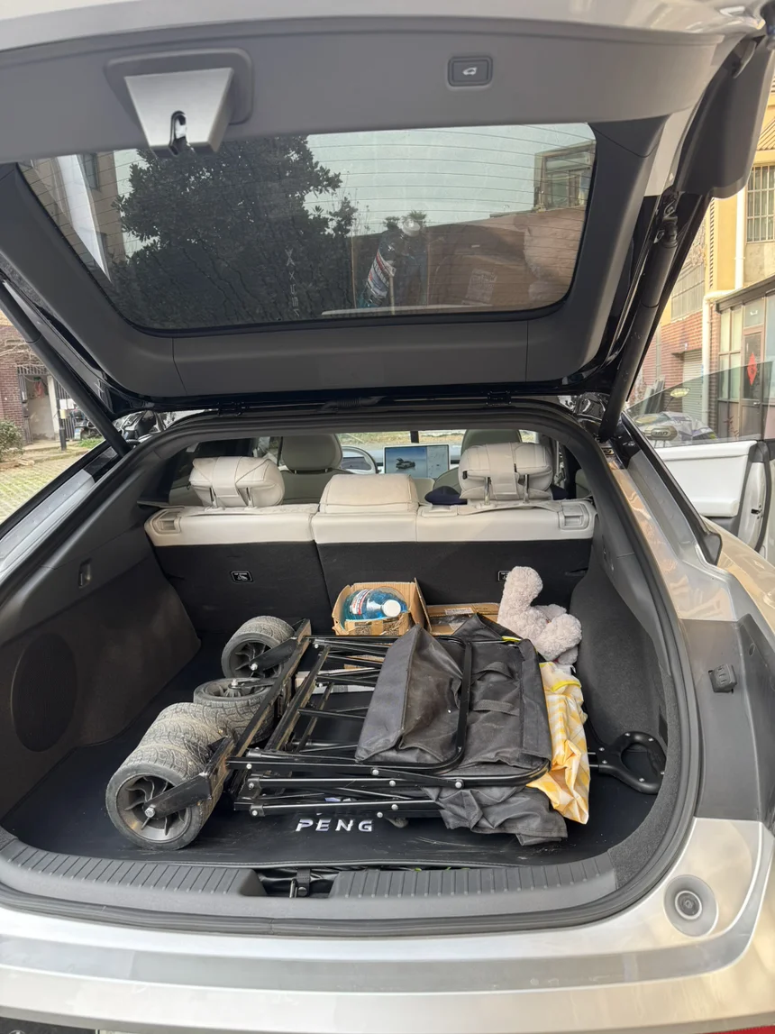 当初选小鹏P7+,就是被大掀背和超大后备箱空间狠狠吸引,超高得房率,出游、载物都超从容。不管是当旅行车、超市大购物,还是装娃的各种玩具车,都轻轻松松。