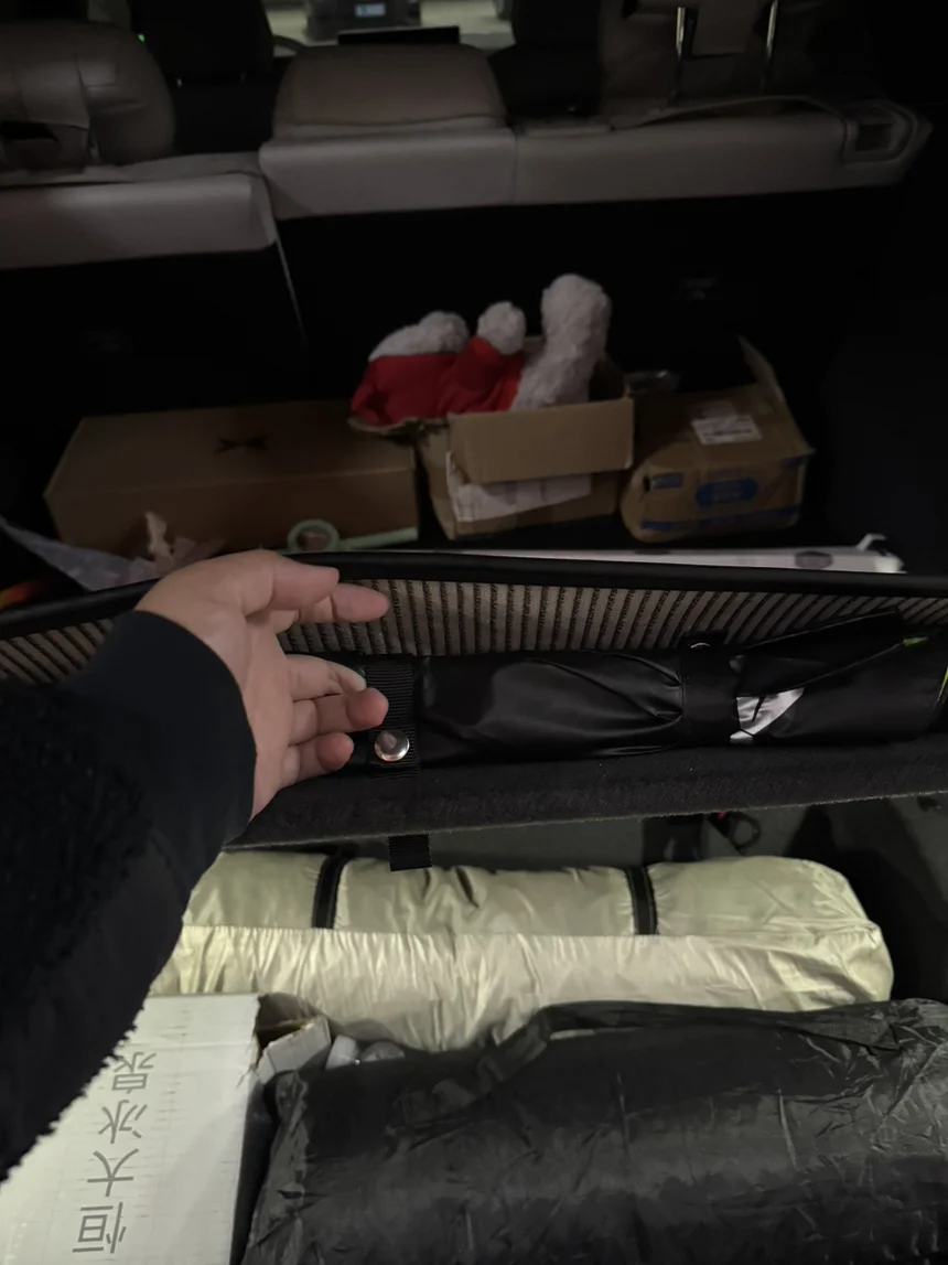 更绝的是还有下沉储物空间,平时放矿泉水、露营装备、野餐垫完全不占用上层空间。