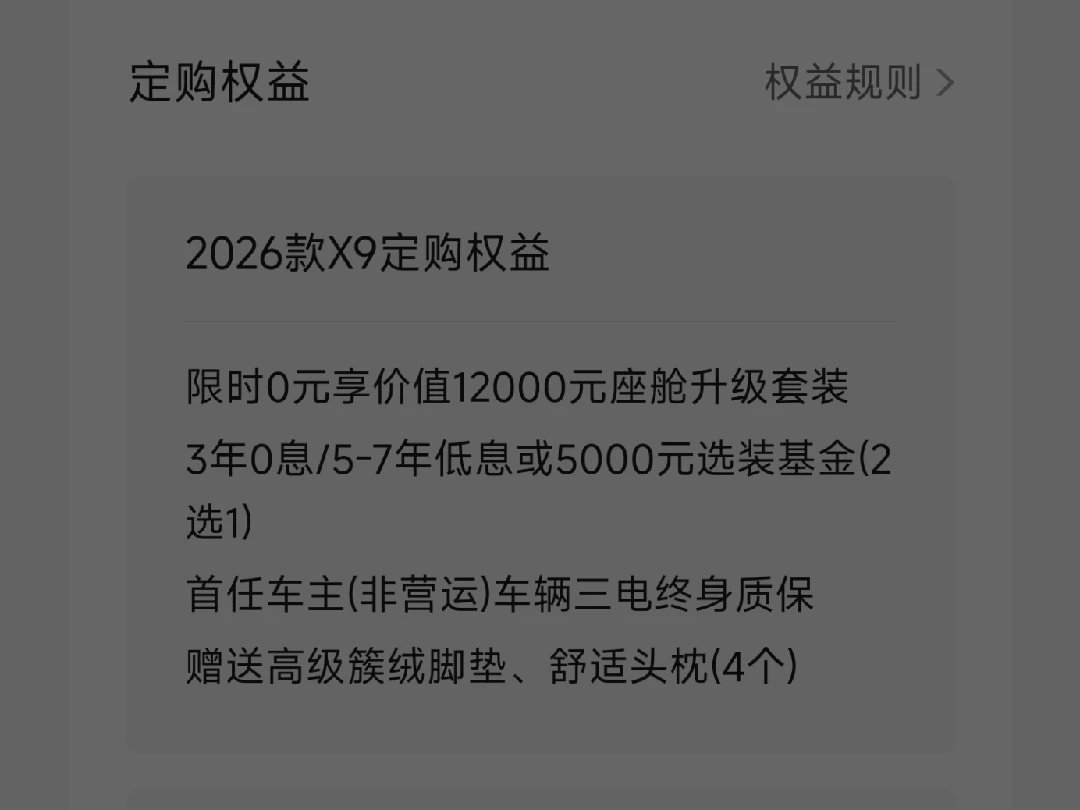 看了很久,最后决定还是下定26小鹏x9纯电710版,一直期待中。