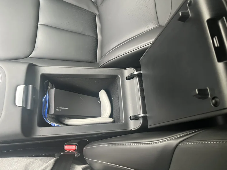 三、中央扶手箱,堪称车内“迷你收纳间”。空间规整绒面衬里,正好收纳行驶证、驾照等证件,零碎小物件也能有序归置,还能轻松放下车载香薰替换装。随手开合取放便捷,把车内零散物品妥善收纳,让中控台清爽整洁,实用又贴心,完美适配日常用车的储物需求。
