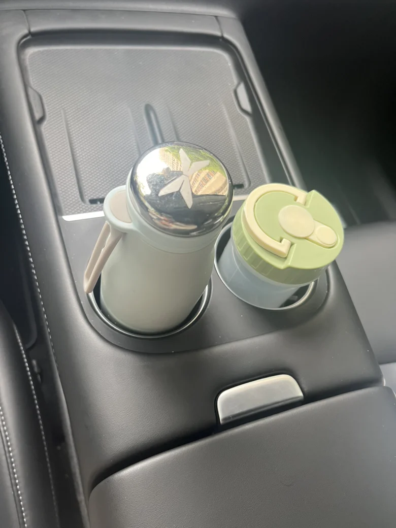 四、中控区域的双杯架设计!搭配中控简洁线条,质感超棒。日常可轻松放下两大杯水或随行杯,出行通勤放咖啡、保温杯都稳稳的。与周围内饰布局契合,既不占用额外空间,又能让车内收纳整洁有序,细节太贴心!