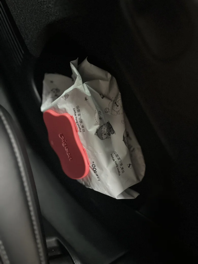 八、有娃家庭真的太懂了!小鹏G6后排这个顺手的储物空间,专门用来放贝亲婴儿湿巾再合适不过。随手一塞不占地方,孩子弄脏手、擦辅食、清洁座椅都能秒取,不用翻包找半天。把湿巾长期放在这里,随时应对带娃出行的各种突发脏污,让带娃自驾全程清爽省心,细节里全是带娃人的安全感。