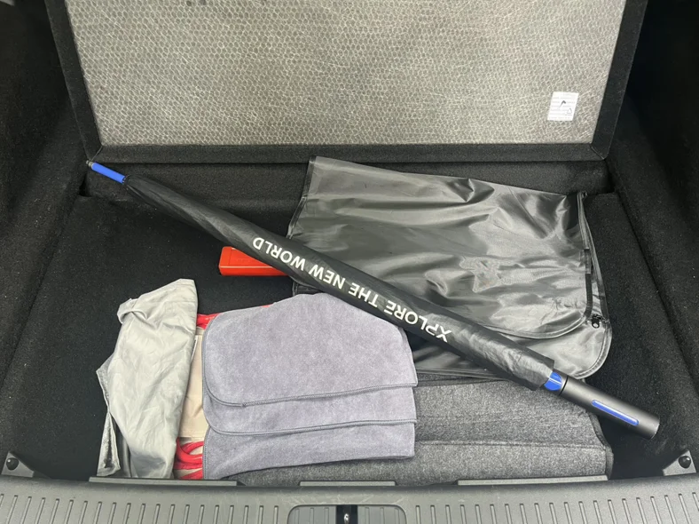 九、后备箱隐藏暗格太实用了!规整空间完美适配长柄伞、擦车布、遮阳收纳袋,还能轻松放下三脚架等应急工具。物品分区摆放不杂乱,取放顺手不占上层空间,把常用品和应急装备一站式收纳,让后备箱始终整洁有序,日常通勤、自驾出行都超省心,细节拉满的储物设计太懂车主需求了。