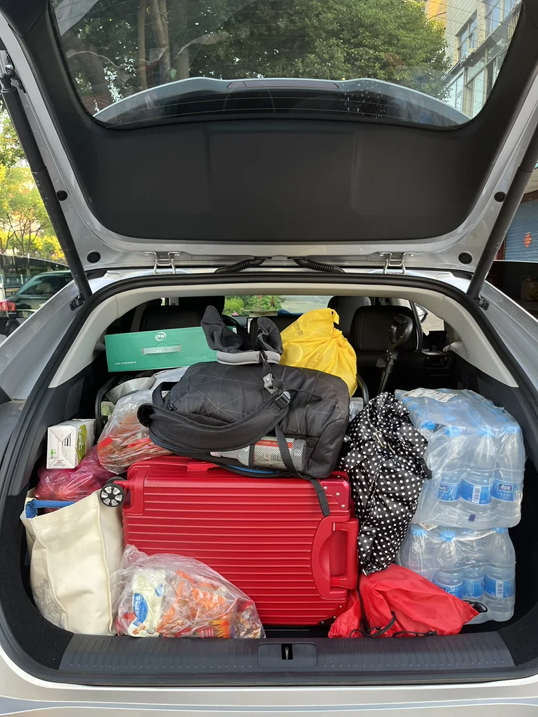 十、后备箱空间真的太能装了!也是当初选车时看中的一个重要原因。行李箱、双肩包、饮用水、零食、行李袋、宝宝玩具车等满满一车物品,全部轻松容纳,规整空间利用率拉满。不管是长途自驾、家庭出行还是搬家采购,都能一站式装下所有行李,家用实用性直接拉满,装下的是行李,更是说走就走的底气。