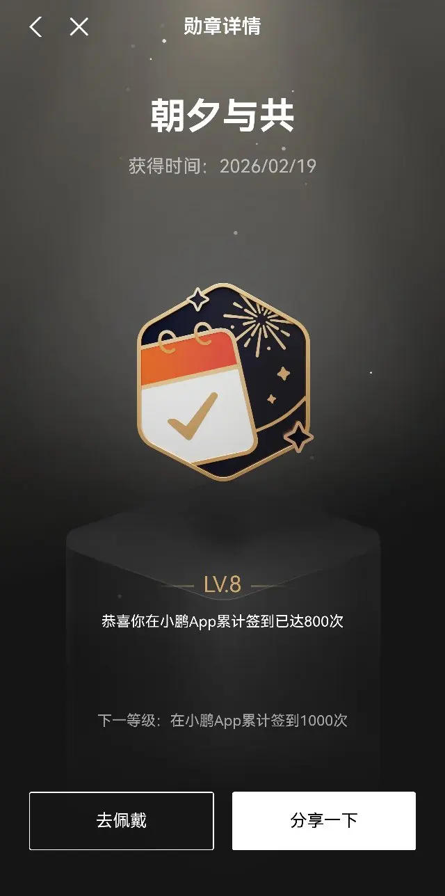 🚗也许这就是成为小鹏车友的专属浪漫,是一步步拿下那属于每个鹏友不同的勋章,成就专属于鹏友们的成就。
