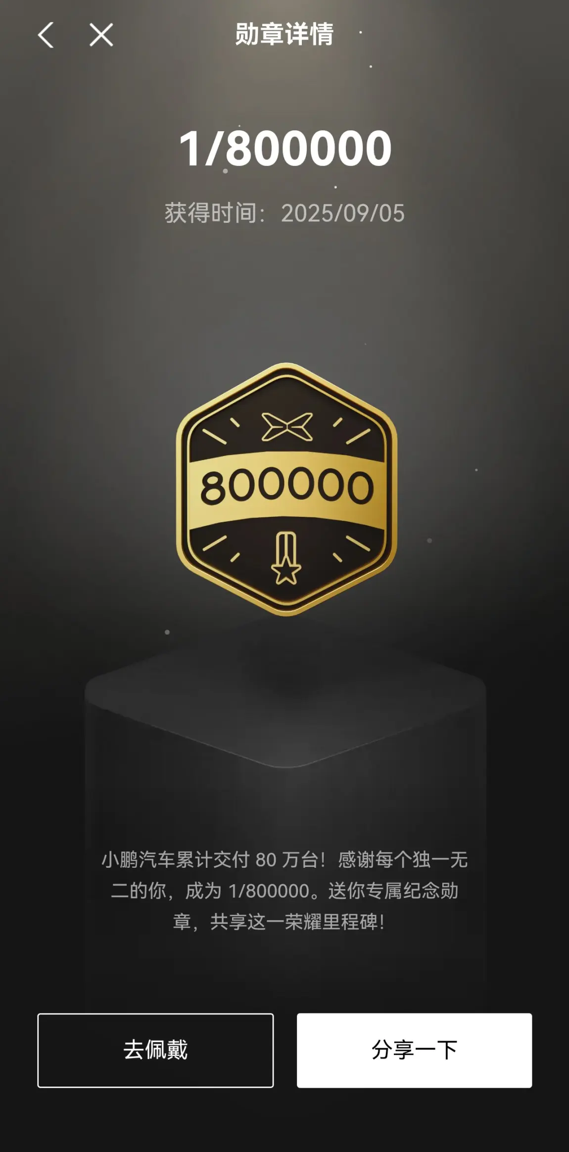 我成为小鹏车主不算长,但很幸运的是我正好见证了小鹏汽车那几次让人难忘的时刻,2024年小鹏汽车十周年,2025年11月小鹏汽车累计下线100万台,2025年9月小鹏汽车累计交付80万台,而很荣幸我是那独一无二的80万分之一,一起共享和见证了这个具有里程碑意义的时刻。