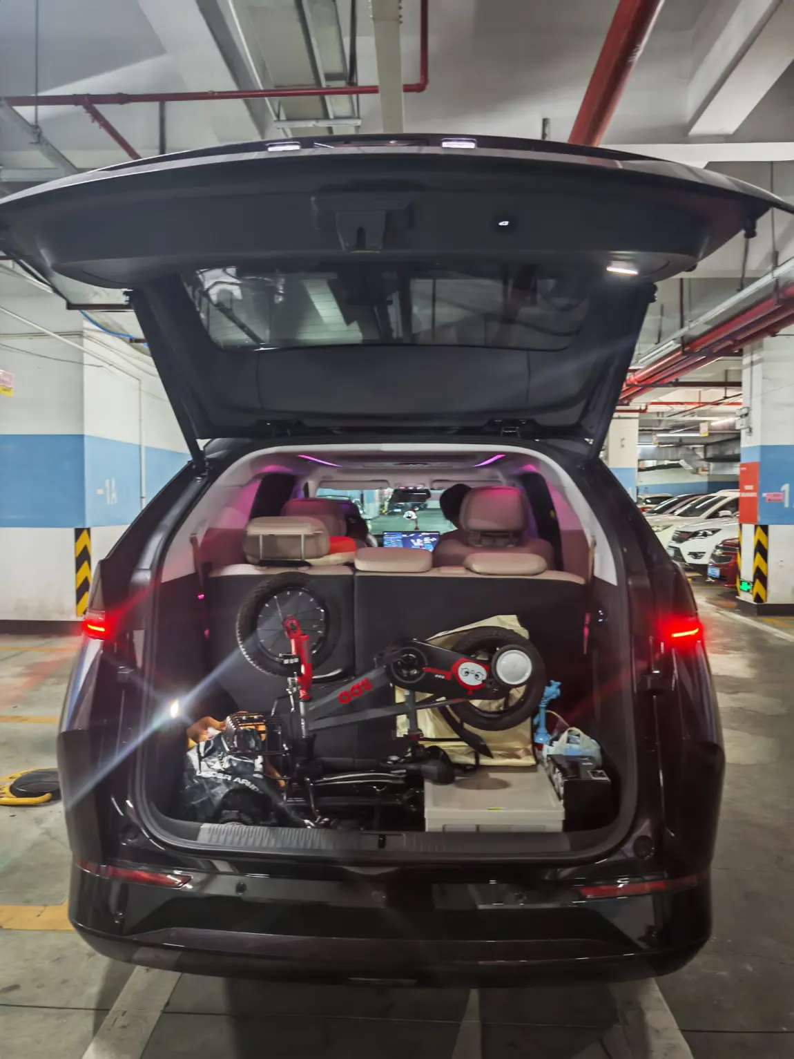 作为MPV,X9的后备箱空间堪称“王者级别”,日常七座状态下,后备箱就能放下整套露营装备、儿童单车、运动装备等物品,满足基础收纳需求;第三排座椅支持一键电动折叠,放倒后能拓展出超大储物空间,最大拓展容积超2500L,秒变MPV级“货拉拉”。