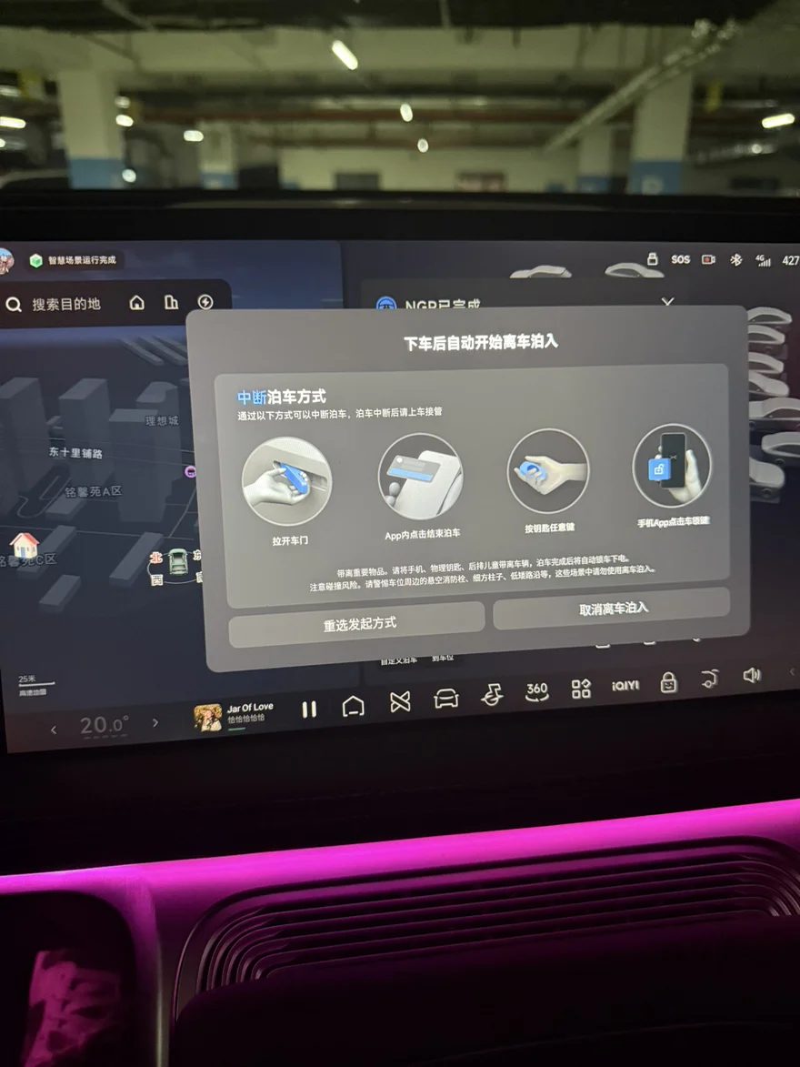 对于不少车主来说,地下车库的极窄车位堪称“停车噩梦”。尤其是在寸土寸金的商场地库,车位宽度仅比车身多出一点点,不仅停车时要反复挪位、小心翼翼,生怕剐蹭到旁边车辆,停好后更是连车门都打不开,只能狼狈地从车窗爬出,开车出门也面临着难以出库的尴尬。而小鹏G9搭载的离车泊入泊出功能,完美攻克了极窄车位停车难题,让每一次停车都变得轻松优雅,彻底告别地库停车焦虑。