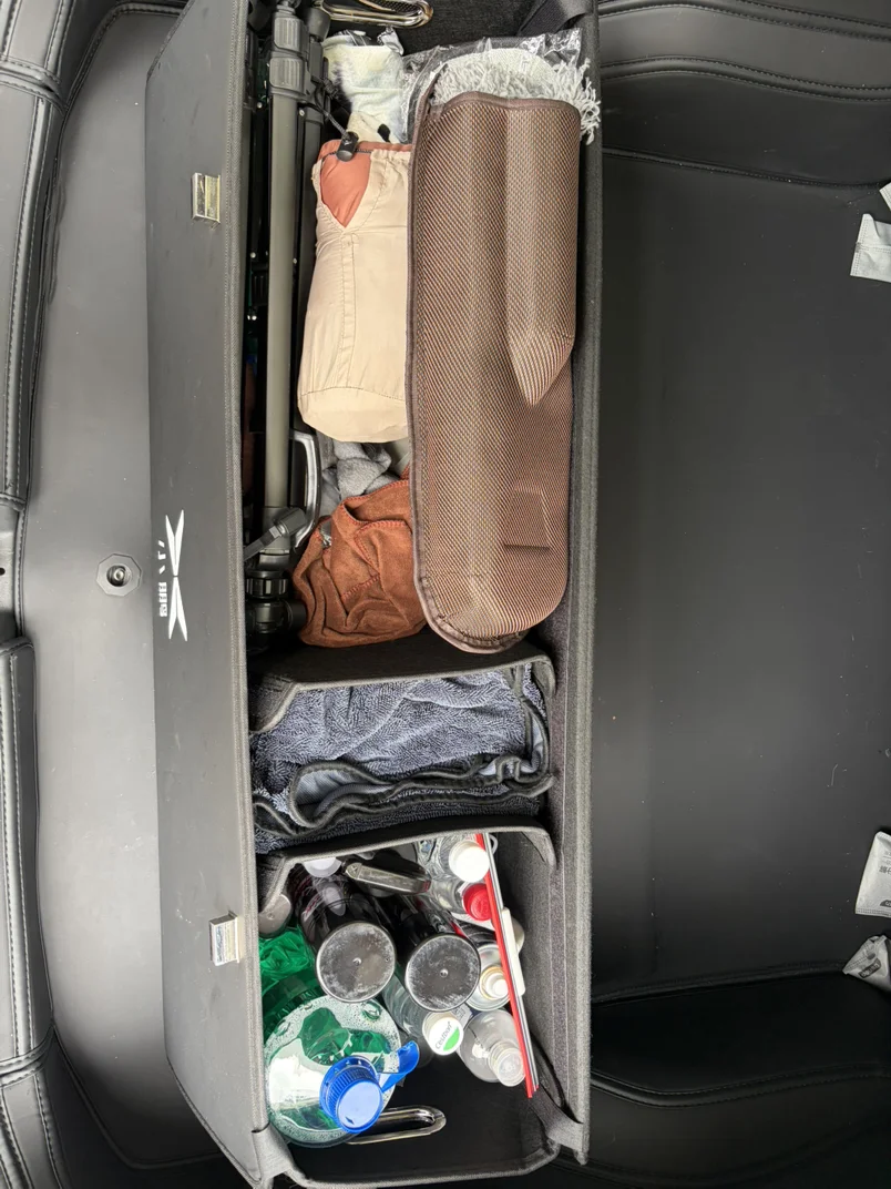 4.加装一体储物箱,洗车用品、洗车毛巾和各类杂物全收纳,后备箱看着利落又规整。