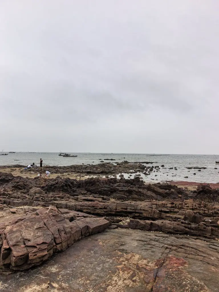渔村的海岸线全是独特的火山岩礁石滩,退潮后形成一个个天然水洼,漫步在礁石上,看渔船在海面作业,听海浪拍打的声音,是最治愈的放空时刻。