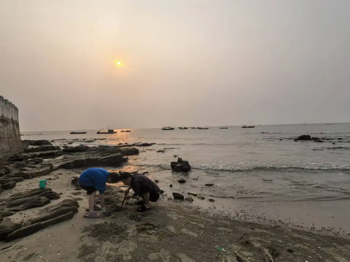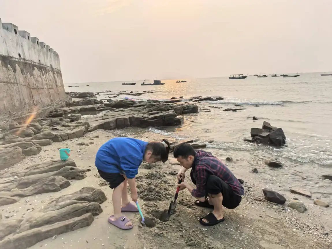 - 退潮后的礁石滩上,藏着无数小海鲜:花蛤、小螃蟹、生蚝、小螺,甚至能挖到蛏子,孩子拿着小网兜、小铲子,在礁石间追逐小螃蟹,是最纯粹的童年快乐。