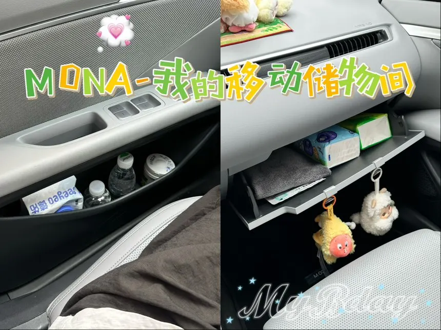 💡利用座椅背面收纳可爱的抽纸盒、公仔🧸。有时候坐后排看到可爱的玩物真的心情超级好的!