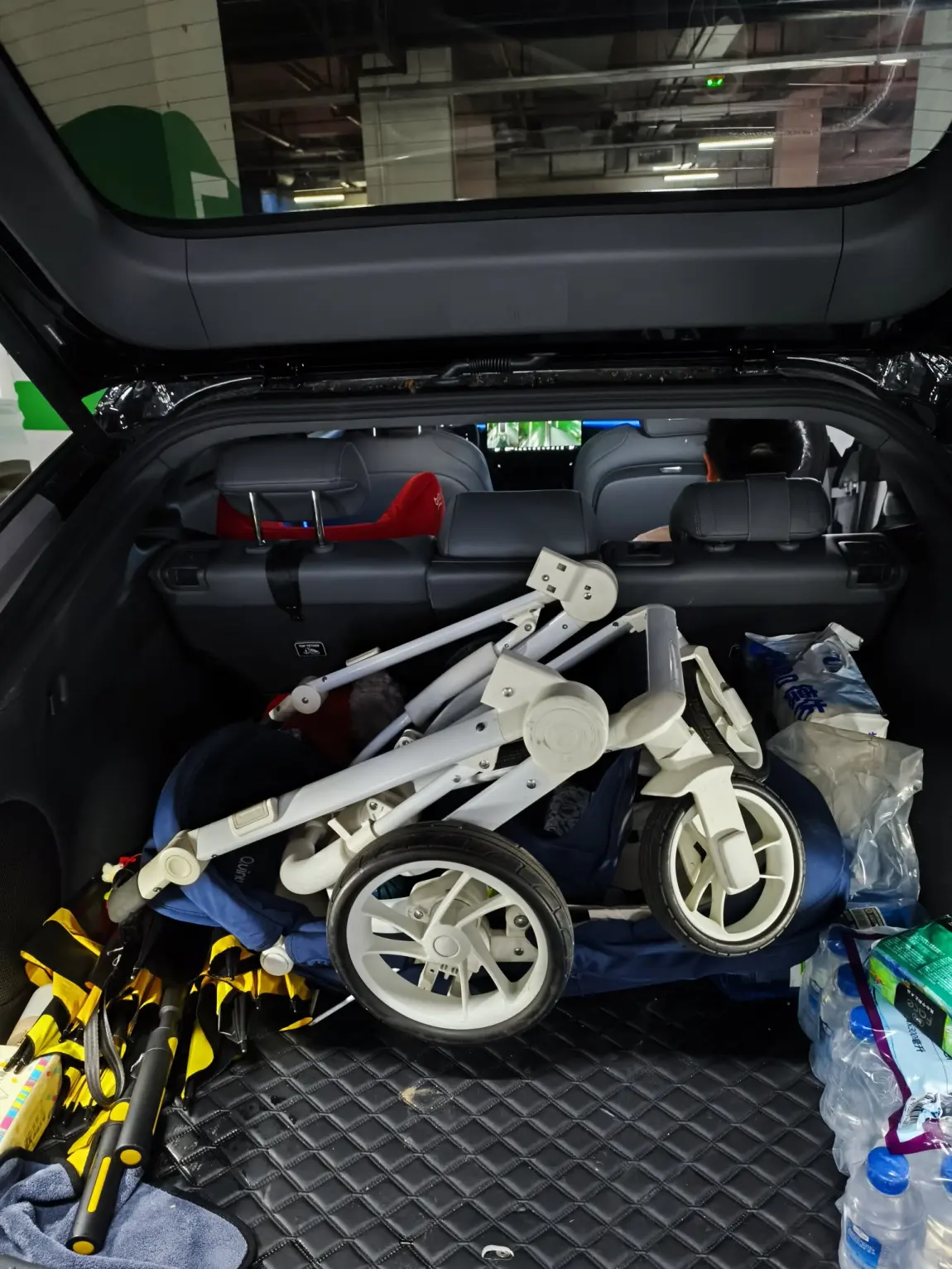 后备箱的装载能力更是让人惊叹,超大电动掀背开口,婴儿车、折叠餐椅、宝宝玩具箱、露营帐篷、野餐垫…… 所有带娃出行的装备,统统能轻松塞下。每次去山姆采购,零食、奶粉、纸尿裤、生活用品买再多,也能毫无压力地全部收纳,再也不用纠结 “什么该扔、什么该留”。它就像一个移动的百宝箱,装下宝宝成长路上的所有行囊,也装下我们对生活的满满热爱。