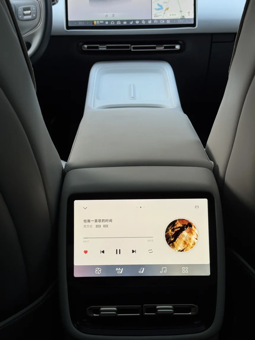 P7+后排小屏幕真的惊艳到我🌟!坐后排休息时,能直接选歌、切歌、控制播放器,不用麻烦前排,高级感和实用性双在线,后排也能独享音乐时光~