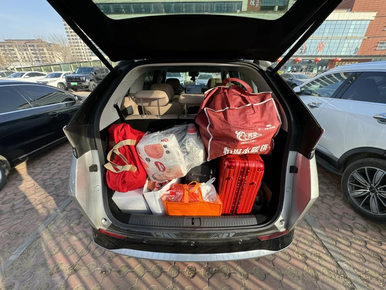 后备箱直接把所有待产用品全塞进去,还不挤不乱,拿取也方便。关键是一家人都能跟上,爸妈、老婆、大宝等一车坐满7个人,安安稳稳去医院,不用分两趟、不用挤来挤去。