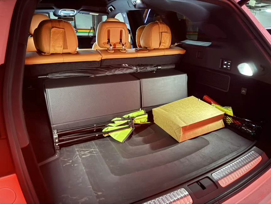 而最让人惊喜的是前车盖储物空间,宽大的容积刚好放下露营折叠椅与收纳袋,软质内衬避免物品晃动,拿取露营装备时不用翻找后备箱,通勤与露营的切换变得轻松随性。后备箱则是空间魔法的核心,规整的布局搭配可拓展的容积,大号收纳箱、露营装备能整齐码放,后备箱下方的隐藏空间还能收纳杂物,让整车始终保持整洁。