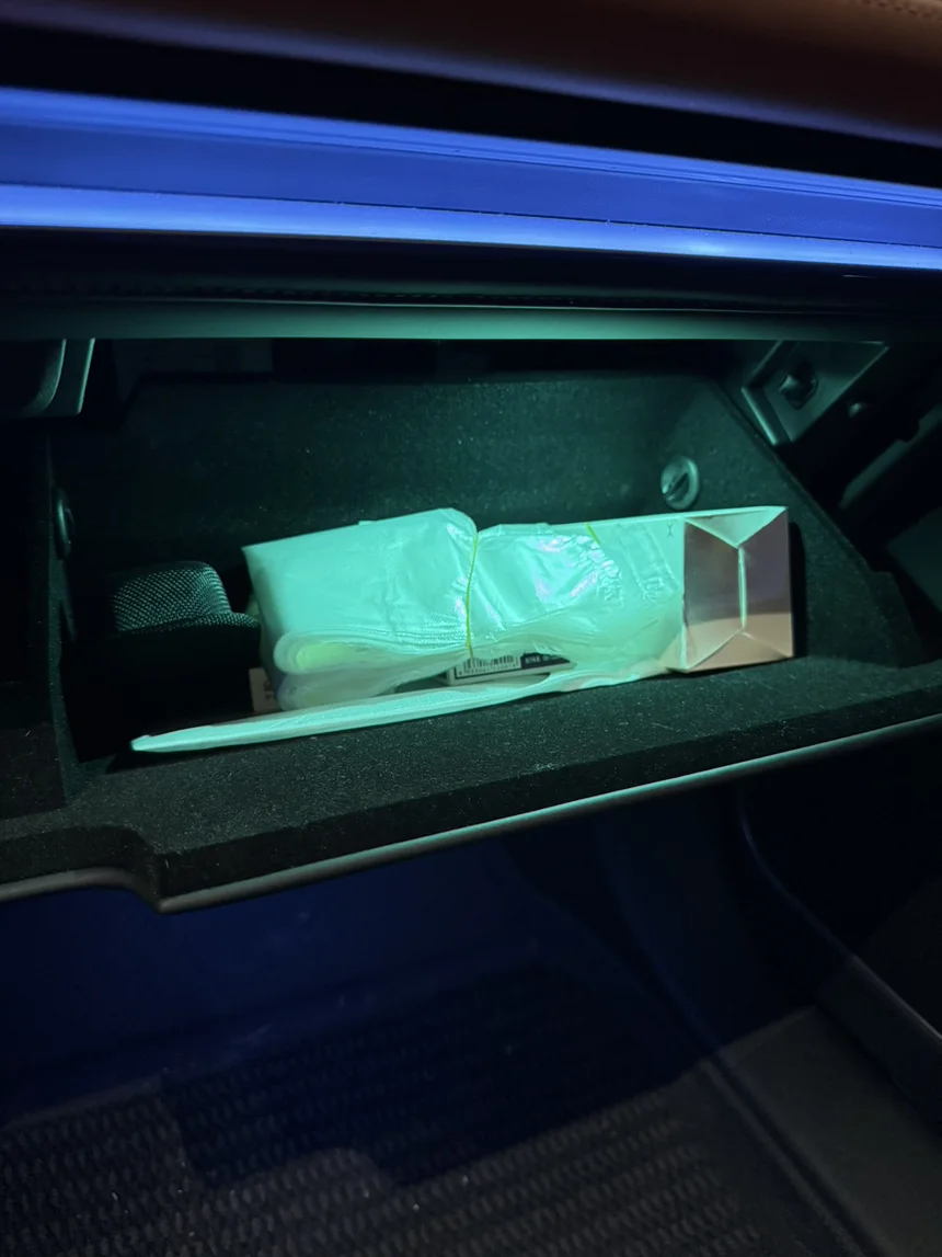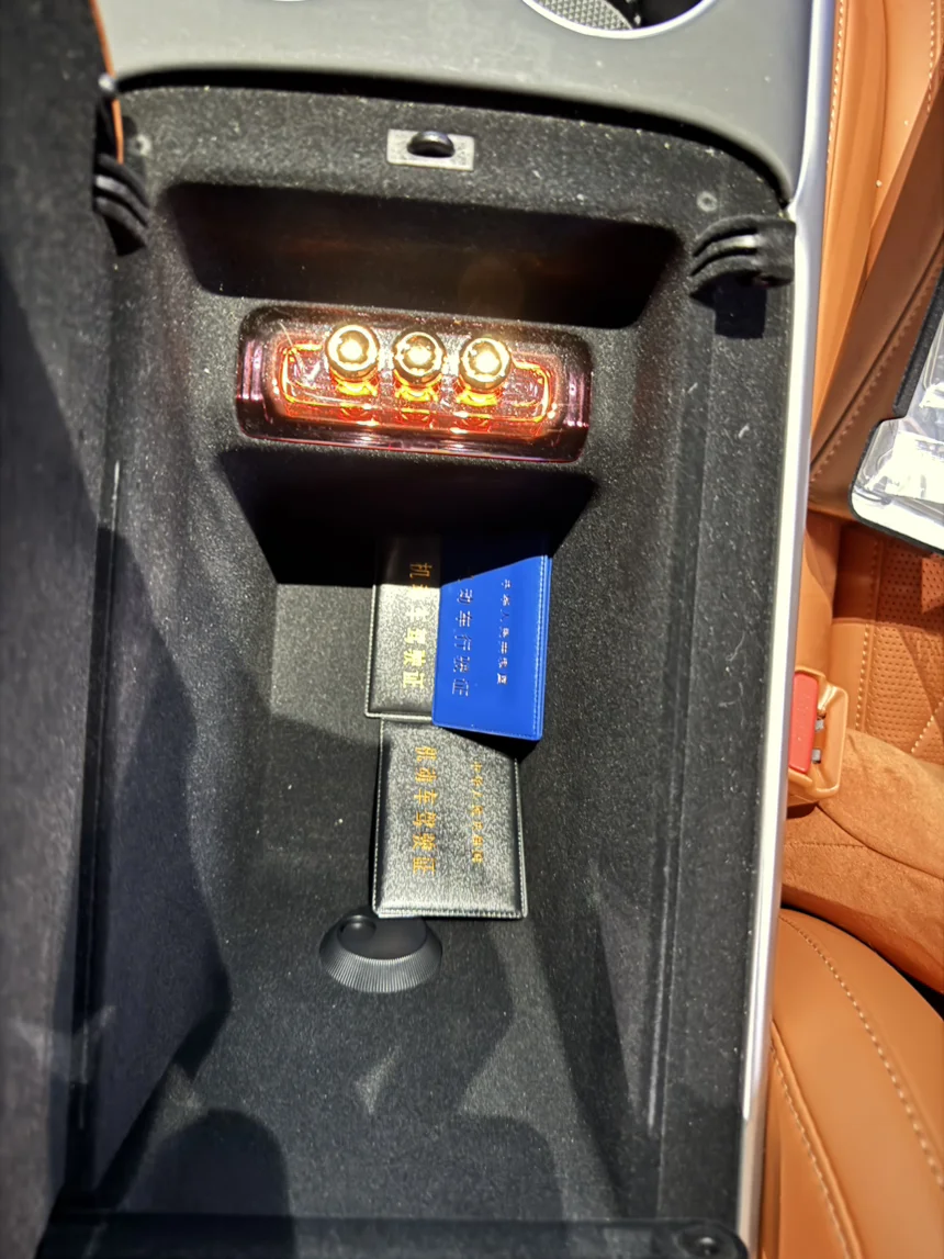 车顶的眼镜盒是点睛之笔,贴合视线盲区的设计,让墨镜、卡片都有专属角落;手套箱被氛围灯点亮,分层的绒面内衬稳稳收纳证件与应急物品,拿取时的触感,是精致出行的第一重仪式感。中央扶手箱更是“移动百宝箱”,分层格区把行驶证、驾驶证归置得整整齐齐,香氛与车钥匙的收纳位,让琐碎的随身物品都有了归属感,打开的瞬间,满是井然有序的安心。