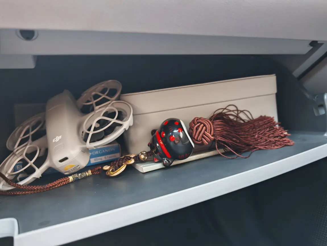 我的手套箱平时主要是放我在小鹏商城买的光年麦克风的,随时随地很方便的拿出来就K歌,简直就是我的移动KTV,而且那么大个盒子居然能放进去,另外还放了小无人机平时拍MONA用。