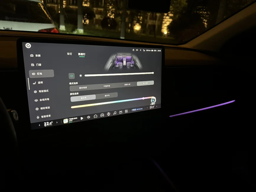 当初一眼心动就是因为它,四种模式里我最吃音乐律动的设定:灯光会跟着鼓点跳动、跟着旋律呼吸,连副驾的朋友都忍不住说,坐我的车像在移动livehouse里听歌,晚上开在路上,连隔壁车都忍不住多看两眼,这种被音乐和光影包裹的感觉,真的太治愈了✨