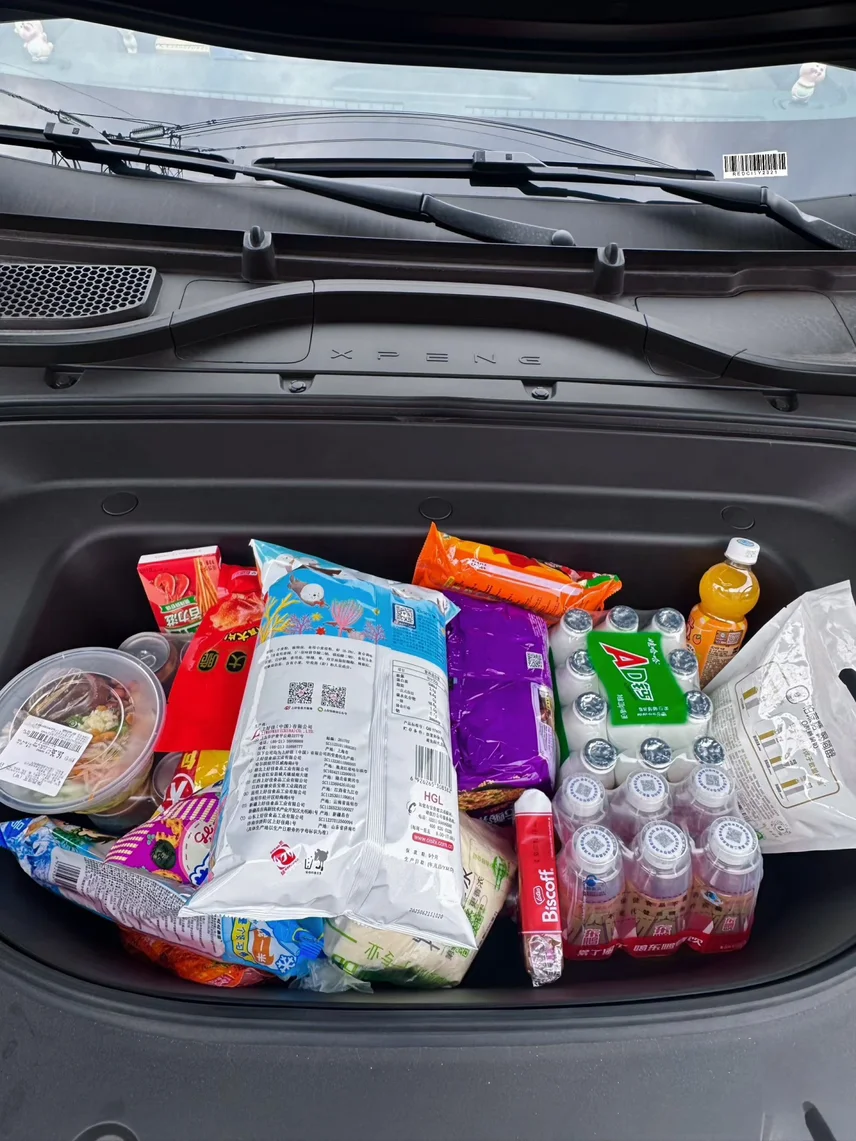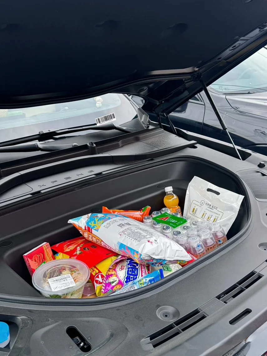 G9的71L前备箱真的是纯电车专属的宝藏空间,独立密闭、完全不占车内座舱空间,我直接把它打造成了「移动零食补给站+工具收纳仓」。
