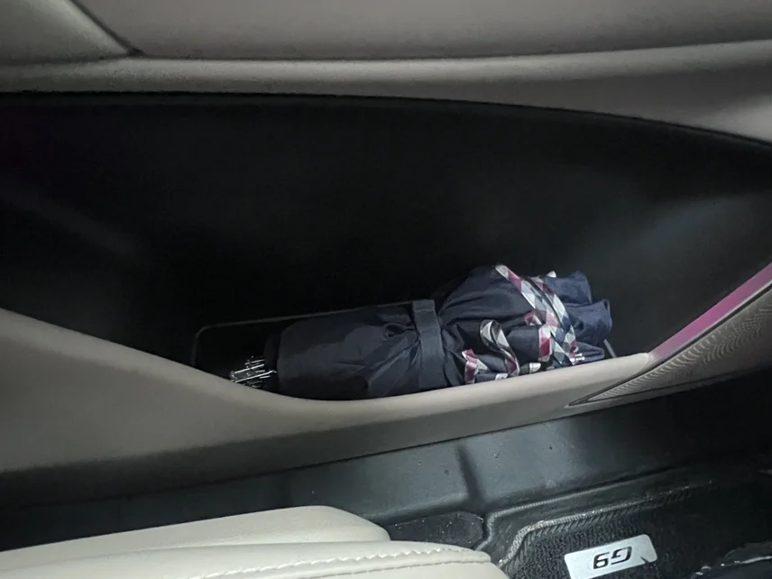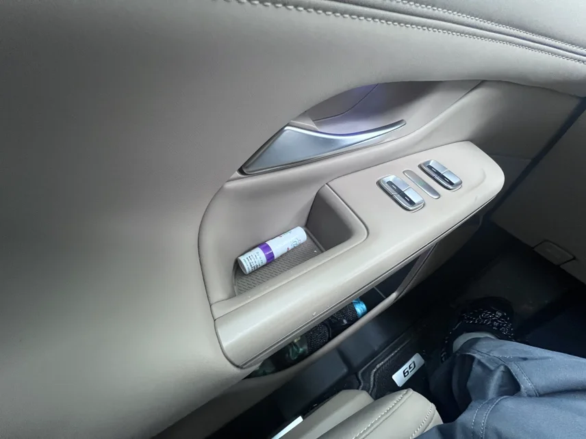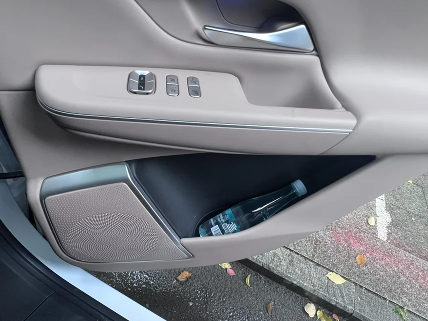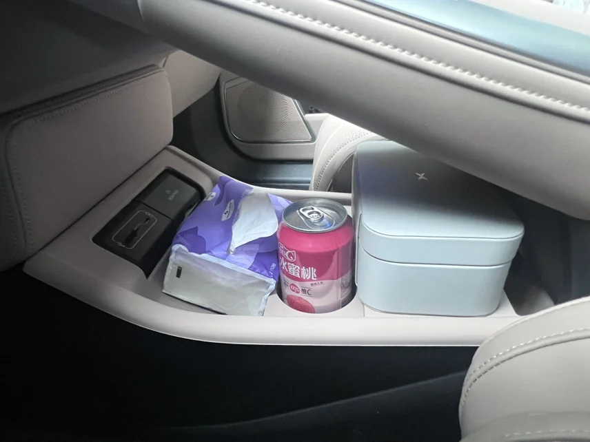 • 主驾车门:上层小槽放口红、润唇膏、薄荷糖,下层大空间塞矿泉水、湿巾、行车证件,拿取零障碍