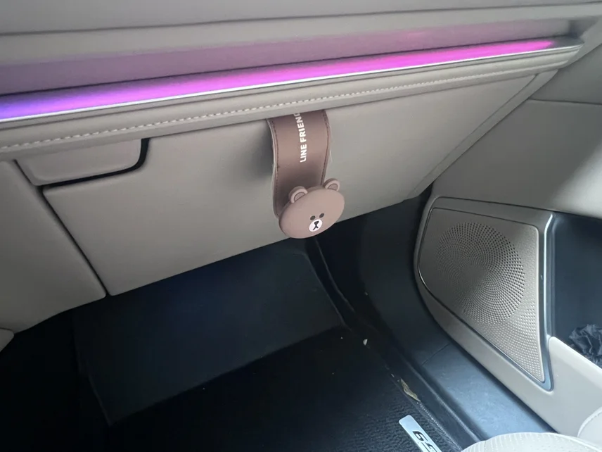 • 实用小挂钩:我在手套箱外侧加装了小熊挂钩,平时挂口罩、垃圾袋、购物袋都超方便,不占储物空间还特别实用