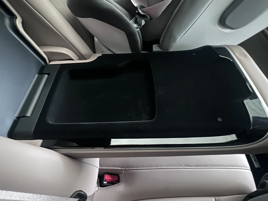 • 后排小桌板+杯架:展开后秒变餐桌,给孩子放零食、绘本,长途出行超省心