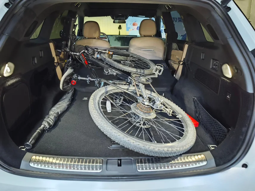喜欢骑行的朋友看过来,标准尺寸的折叠自行车(含车轮未拆卸状态)直接横放进后备箱,空间绰绰有余!
