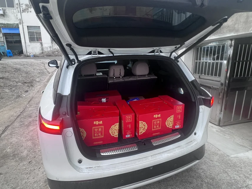 • 年货装载:多箱坚果礼盒、大桶水、收纳箱、实木盆、购物袋,所有大件小件一次性打包,不用分车拉。