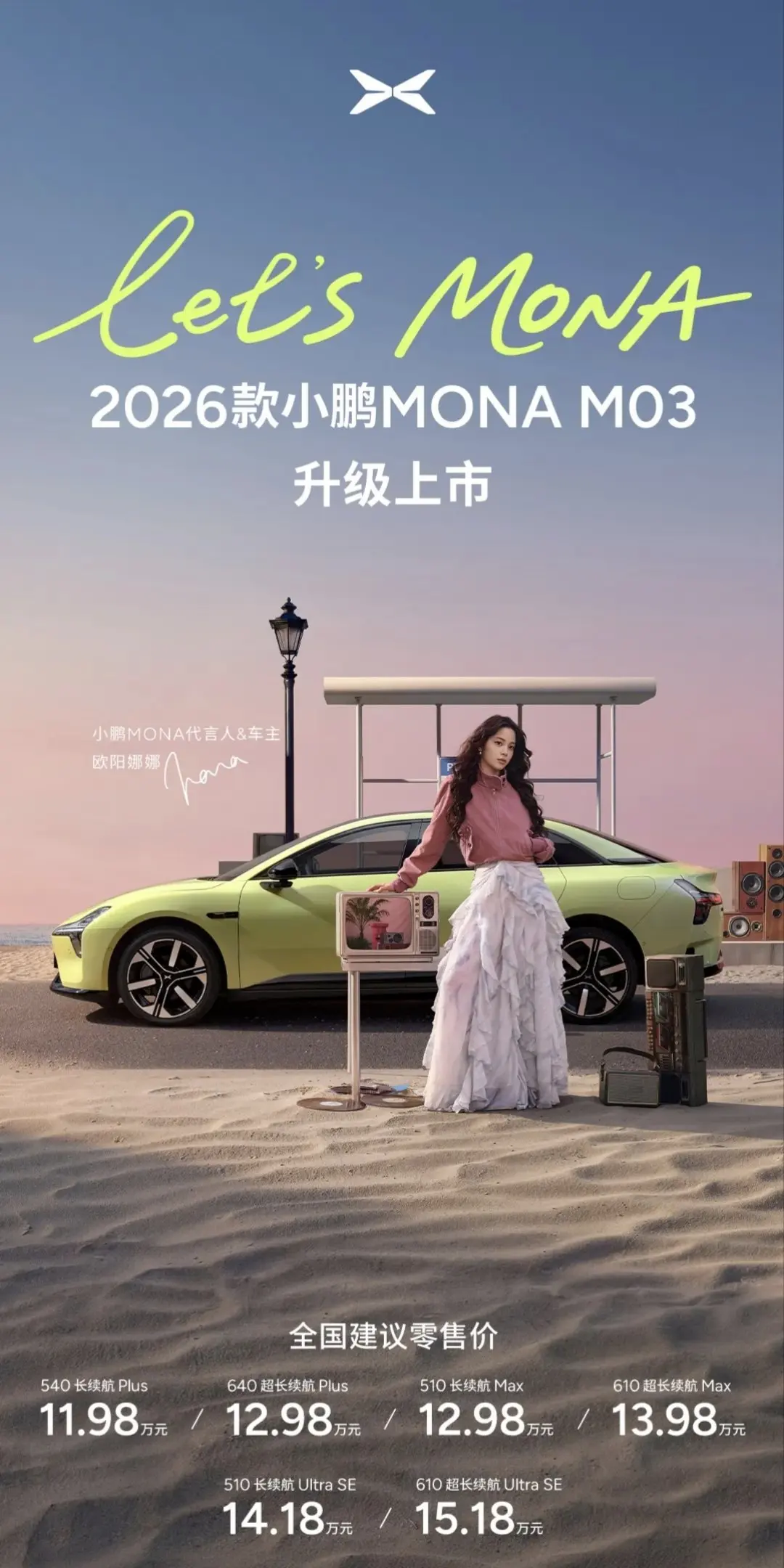 看完小鹏MONA M03发布会,真切感受到技术普惠的诚意。11.98万起售,把图灵AI芯片、全场景XNGP智驾、800V高压平台下探到家用级,续航与空间兼顾家用需求。发布会年轻有活力,新增配色与内饰质感出众,限时权益力度拉满。M03以亲民定价贴合媳妇刚需,轻松享受到高阶智驾,实力与性价比双在线,市场竞争力十足。@鹏友大管家
