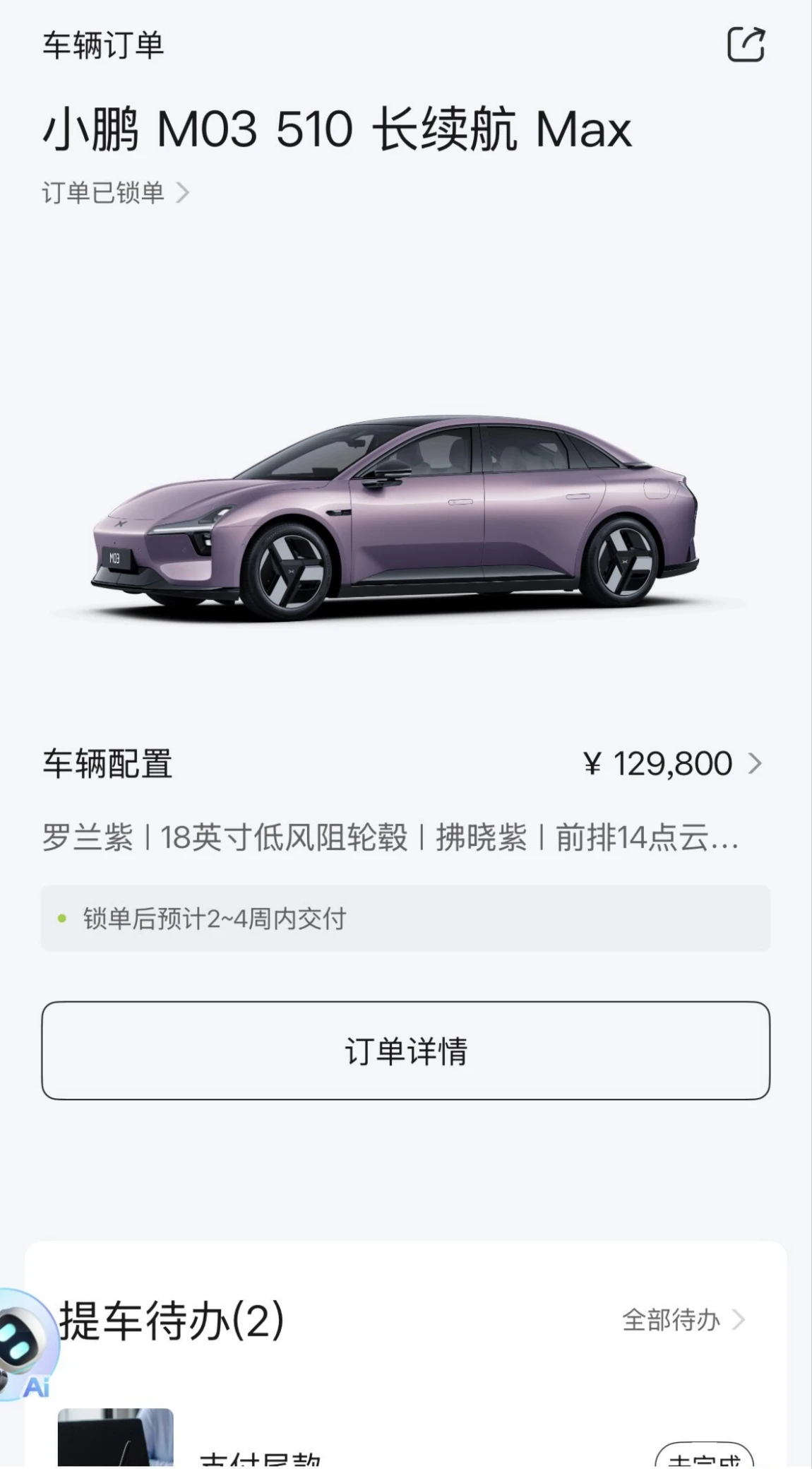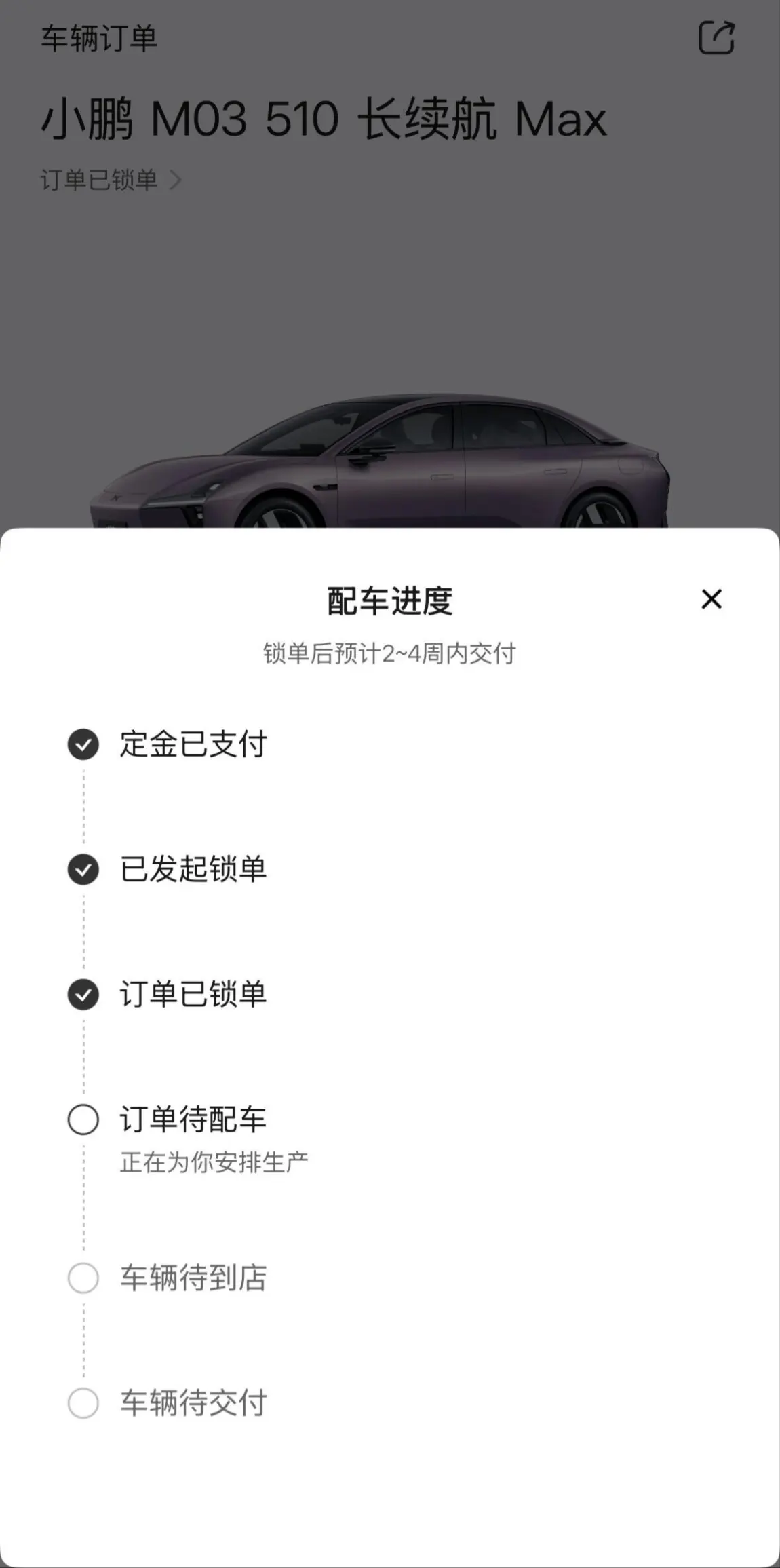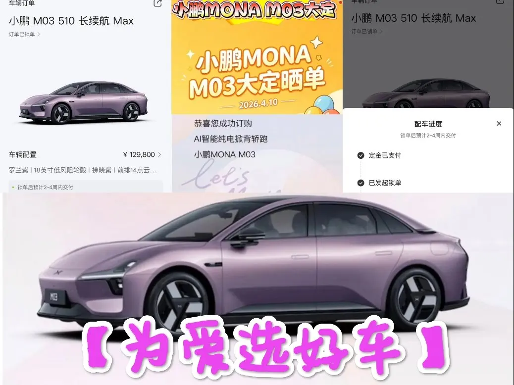 指点媳妇操作打开小鹏汽车APP→进入MONA M03页面→点“立即订购”→选续航、颜色、内饰→确认配置→填写个人信息→支付5000元大定定金→提交订单完成。全程5分钟搞定,进度实时可查 。