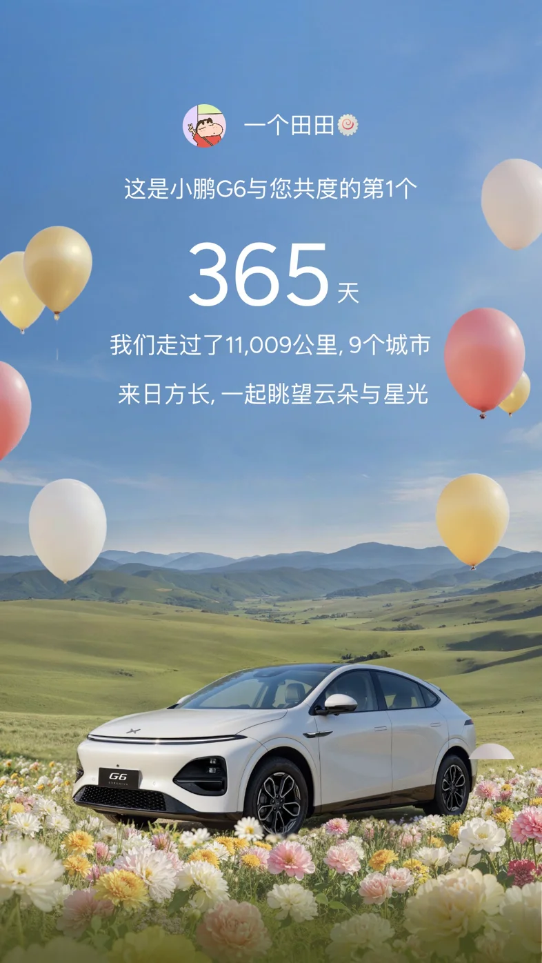 一年相伴,G6陪我通勤、自驾、奔赴山海,见证了无数日常与美好。它用实力证明,智能纯电不是噱头,而是实实在在的便利与舒适。未来日子,愿继续与G6同行,解锁更多美好旅程,也期待小鹏带来更多惊喜。