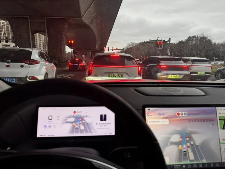 路上车流量也不少,我打开了NGP辅助驾驶,小P自己跟着车流开,稳稳当当的。我不用一直紧张地踩着电门把着方向,能轻松地跟女儿聊聊天。