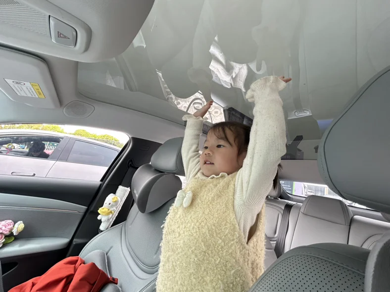 娃看累了动画,喊小P开音乐,氛围灯跟着旋律轻轻变颜色,一家人跟着唱唱跳跳,就算五音不全也能嗨起来😜。小P连后排的点歌声都能听清,互动超有乐趣,平淡的旅途瞬间变热闹派对~