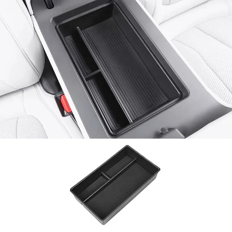 小P中控台下面有一个比较大的位置,但是很浅,且缺少分割,很难放东西。这里我配了一个储物盒,有了分割,很多尺寸合适的东西可以非常完美的放进去。比如我在前面放了墨镜,眼镜盒尺寸出奇合适😏剩下的盒子放了牙线盒,眼药水等偶尔要用的东西,不会乱跑,很好用。