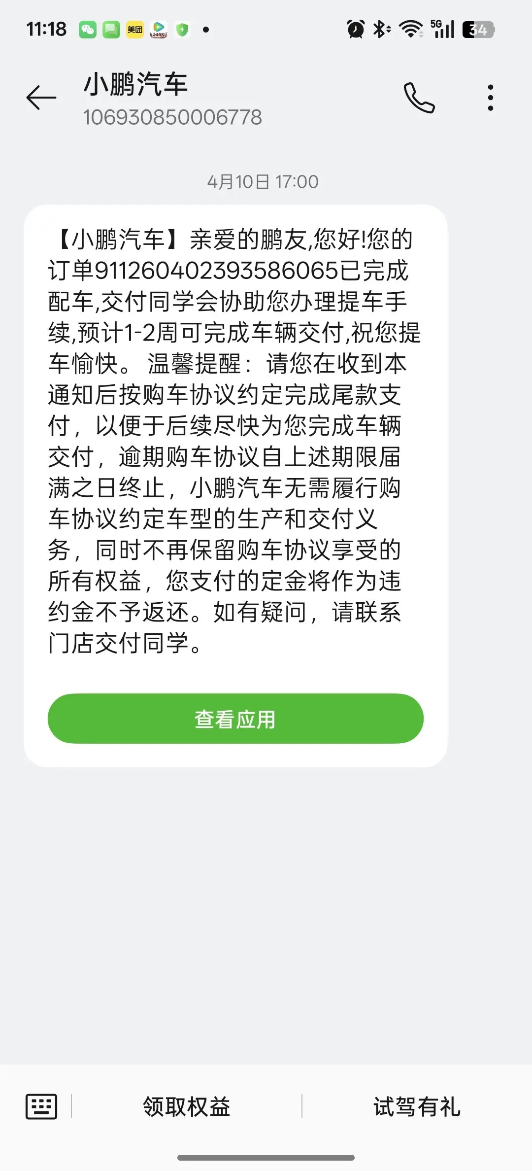 今天接到通知,配车成功,太惊喜了,感谢小鹏的极速。