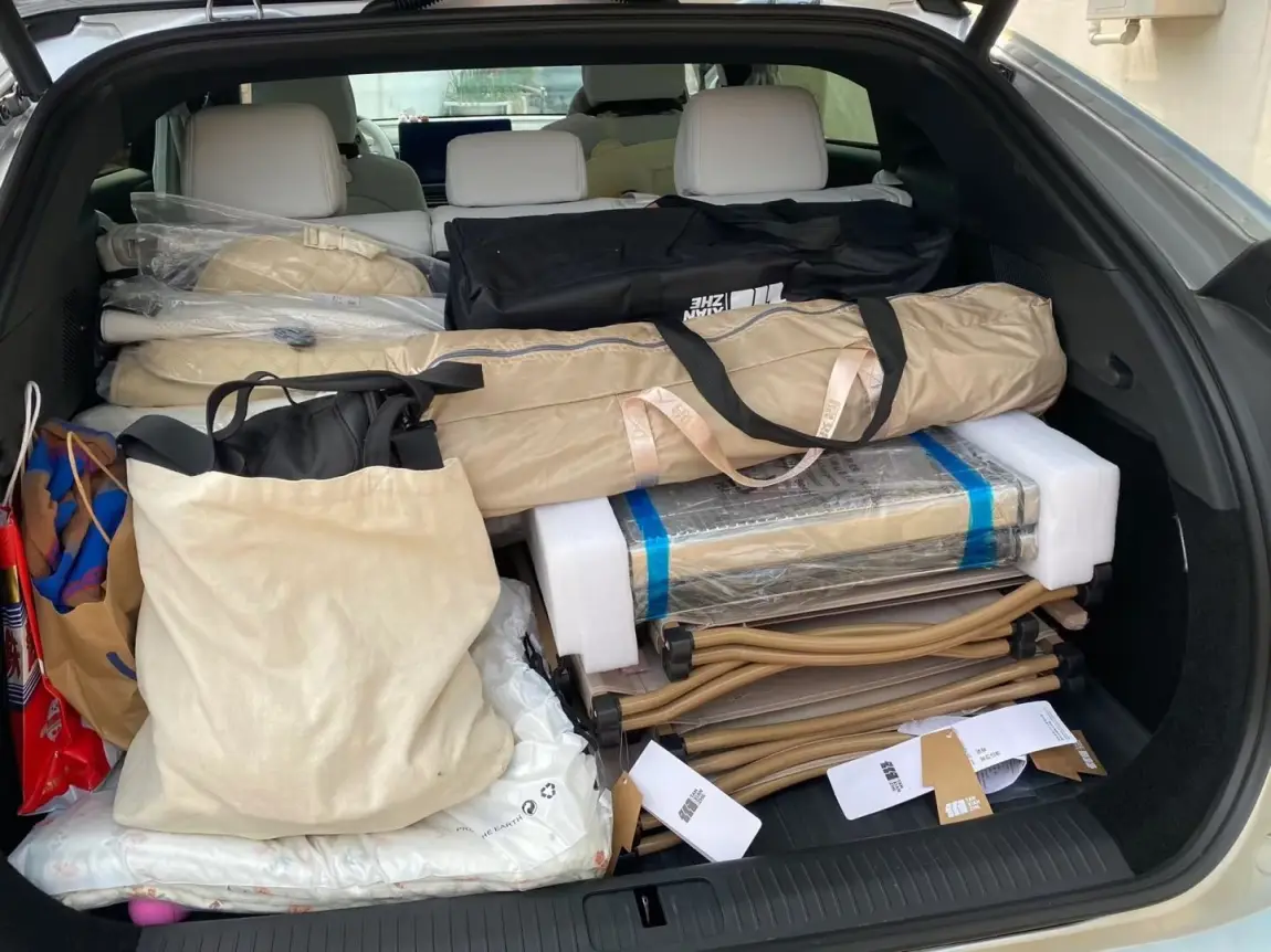 🚛先说主后备箱,G6的纵深和宽度真的很能打。日常全家出行,两个28寸大行李箱+各种行李包、杂物,直接平铺塞进去完全无压力;就算是搬家式露营,天幕、折叠桌椅、收纳包、露营床垫全套装备,一次性全部装车,不用分批跑,规整摆放后还留有余量,装载实力肉眼可见。