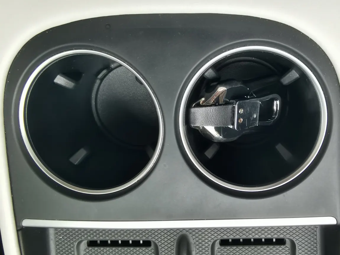 杯架开口大、深度够,限位块能把物品牢牢卡住,不会在行驶中晃来晃去,而且拿取的时候一伸手就够到,比放在扶手箱里方便太多。我平时就把车钥匙放在右侧杯架里,上车不用翻包找钥匙,下车随手一拿,完全不耽误事。