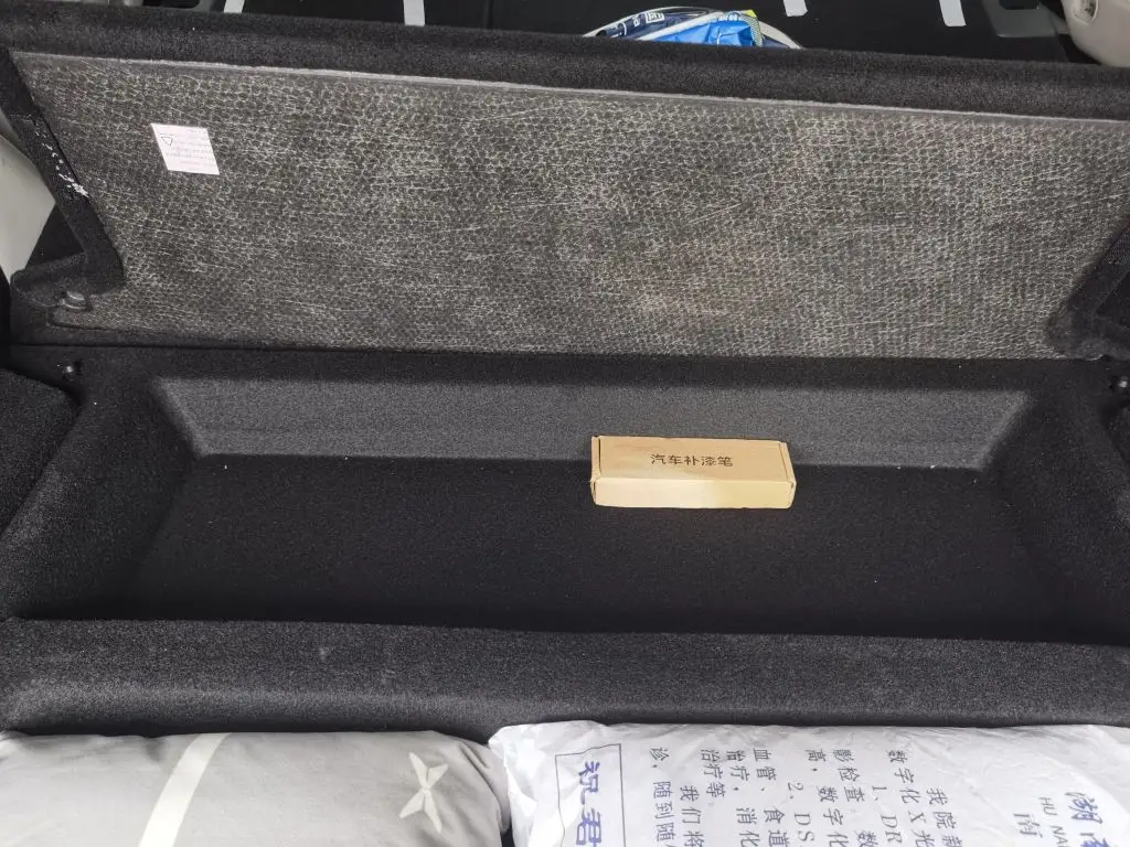 只需要把主底层的木板完全掀开,就能看到一个长方形的小空间,这个空间虽然不大,但深度足够,我用来放汽车补漆笔、拖车绳、应急小工具这类「几乎用不到,但必须要有」的物品。