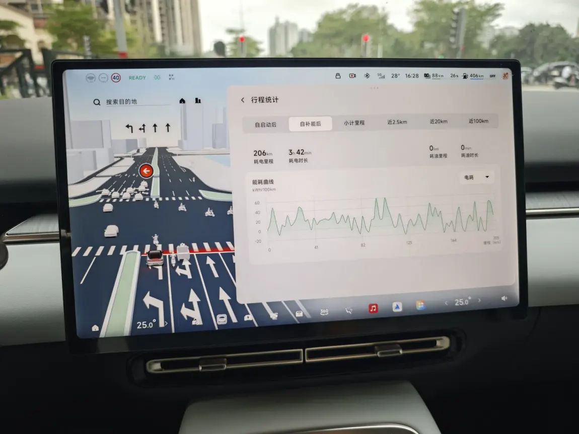 二是续航表现,我的是增程版P7+,充到90%的续航306公里(WLTP模式),本次旅途跑了206公里,还剩余表显续航88公里,达成率94.5%。
