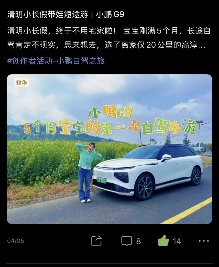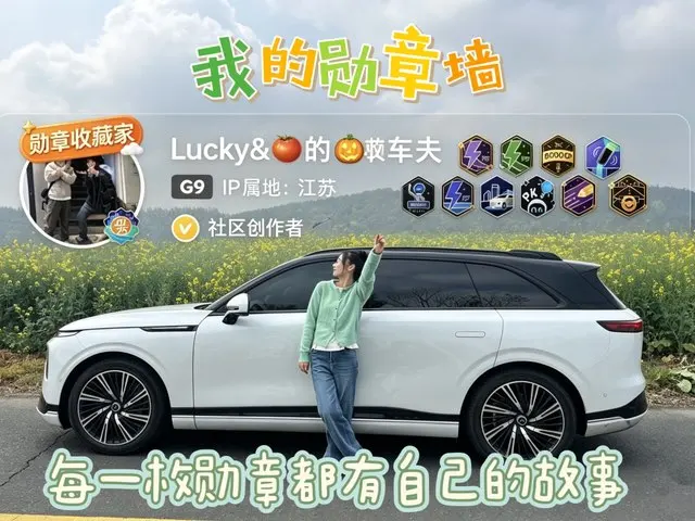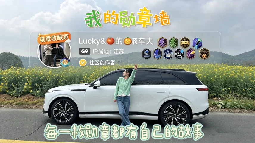 拿到这枚勋章,源于我开着G9奔赴高淳慢城踏青,追着春风、看着漫山油菜花,用车轮丈量春日美景。以前总觉得出行是赶路,有了G9之后,出行变成了享受风景,这枚小小的勋章,把春日的美好、自驾的惬意全都定格,也让每一次季节出行都多了一份仪式感。