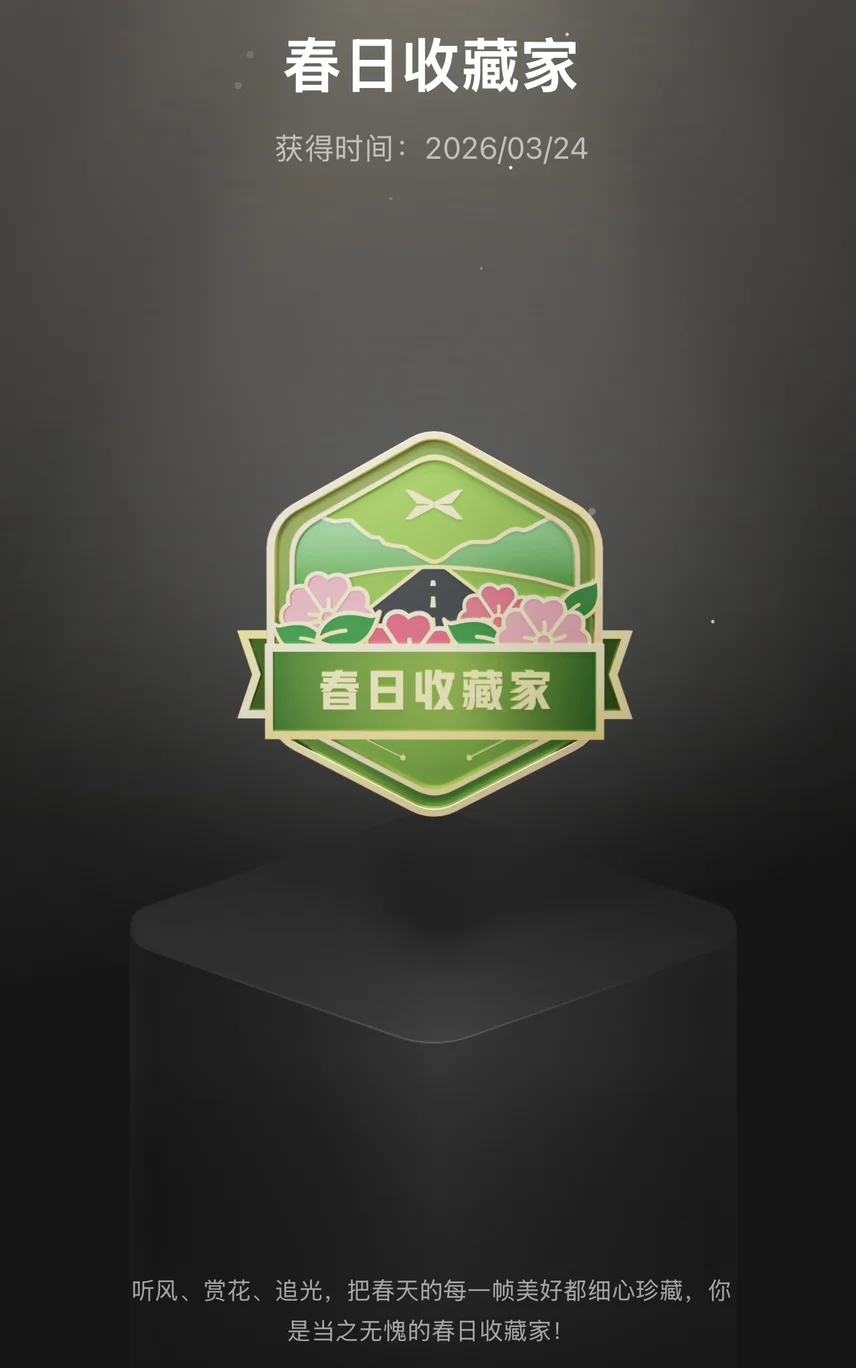 2026年3月24日刚新鲜解锁的季节限定勋章,满满都是春日的温柔与浪漫。