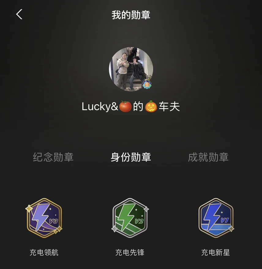 身份勋章里,充电系列勋章是我最有感触的,它完整记录了我作为新能源车主的补能日常,也见证了小鹏800V高压平台的硬核实力。