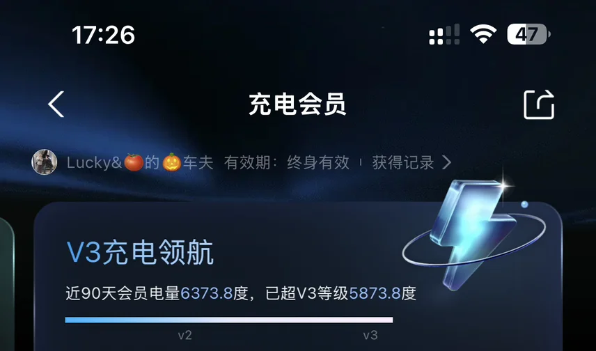 2026年1月31日,我成功解锁充电领航V3勋章,累计在小鹏自营充电桩充电突破500度!